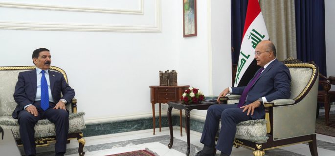 وقال المكتب الإعلامي لرئاسة الجمهورية في بيان تلقت*الرأي* الدولية نسخه منه، إن “رئيس الجمهورية برهم صالح، استقبل في قصر السلام ببغداد، وزير الدفاع جمعة عناد، حيث جرى خلال اللقاء بحث الأوضاع الأمنية في البلد وتطوراتها، والجهود المتواصلة للقوات المسلحة في ملاحقة فلول الإرهاب”.