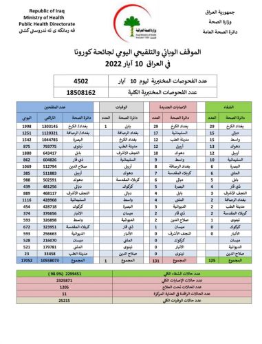 الصحة تسجل 131 اصابة جديدة بكورونا