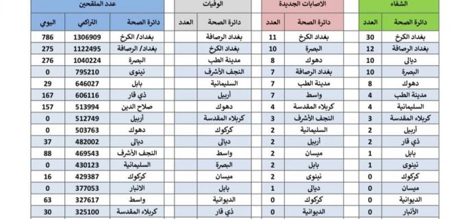 الصحة تسجل 68 اصابة جديدة بفيروس كورونا