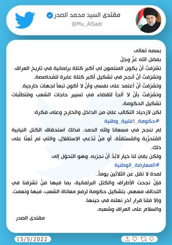 السيد الصدر يعلن التحول الى المعارضة ثلاثين يوما: قرار اخر بعد انتهاء المدة