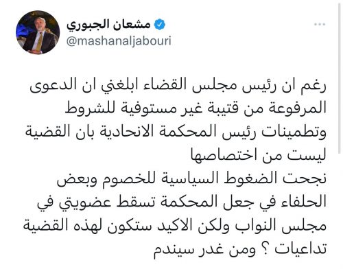 أول تعليق من الجبوري بعد إلغاء عضويته في البرلمان