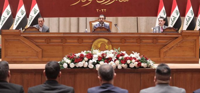 A handout picture released by the Iraqi Prime Minister's Media Office on February 7, 2022 shows a few Iraqi lawmakers attending a scheduled parliament session in Baghdad to choose a new president for Iraq, with most major political blocs boycotting it. - The sweeping no-show deepens a political crisis in the war-scarred country which, almost four months after a general election, still hasn't chosen a new prime minister. The assembly vote had been set for noon for the head of state -- a post with a four-year mandate held by convention by a member of Iraq's Kurdish minority, and currently occupied by Barham Saleh. (Photo by IRAQI PRIME MINISTER MEDIA OFFICE / AFP) / === RESTRICTED TO EDITORIAL USE - MANDATORY CREDIT "AFP PHOTO / HO / IRAQI PRIME MINISTER'S PRESS OFFICE" - NO MARKETING NO ADVERTISING CAMPAIGNS - DISTRIBUTED AS A SERVICE TO CLIENTS ===