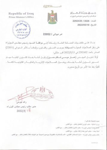 تخويل (عمار موسى) بمهام تسيير شؤون أمانة بغداد