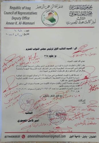 بالوثيقة.. المعموري يوجه طلبا الى رئيس البرلمان يخص عقود 315