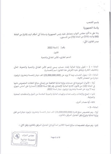 نص مقترح قانون الدعم الطارئ للامن الغذائي والتنمية