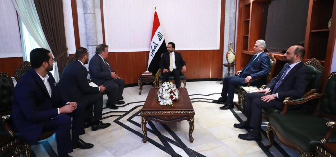 استقبل رئيس مجلس النواب محمد الحلبوسي، اليوم الخميس، المديرَ التنفيذي لمعهد القانون الدولي وحقوق الإنسان وليام سبنسر بحضور رئيس لجنة حقوق الإنسان النيابية أرشد الصالحي.