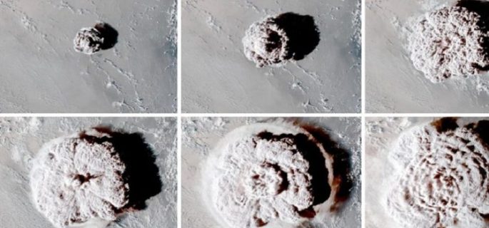 وبحسب دراسة جديدة نشرت في مجلةGeophysical Research Letters لم يتسبب الثوران البركاني الذي أرسل موجات تسونامي مدمرة عبر المحيط الهادئ في 15 كانون الثاني، في تفجير مئات الملايين من الأطنان من الرماد البركاني في الستراتوسفير فحسب، بل أدى أيضا إلى حدوث موجات صدمية وصلت إلى ارتفاع الغلاف الجوي المتأين للكوكب، وهو الطبقة الخارجية من الغلاف الجوي، ما وصل إلى 400 ميل (650 كيلومترا).