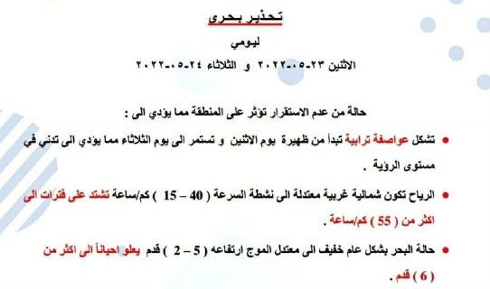 الموانئ تصدر تحذيراً بشأن العواصف الترابية