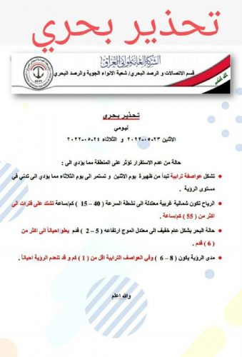 الموانئ تصدر تحذيراً بشأن العواصف الترابية