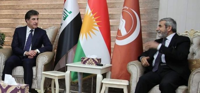 وذكر الاتحاد الاسلامي الكردستاني في بيان، ان”بارزاني التقى بالأمين العام للاتحاد الإسلامي الكردستاني صلاح الدين محمد بهاء الدين في مقر المكتب السياسي للاتحاد بالسليمانية، وأكد أن زيارته للمحافظة هدفها تبديد التوترات وخلق التضامن بين الأطراف السياسية”.