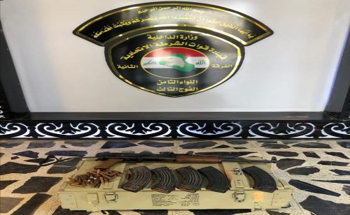 وفي سياق متصل، ذكر البيان، أن “قوة من اللواء الثامن الفرقة الثانية شرطة اتحادية مسنودة بالجهد الاستخباري، نفذت عملية تفتيش على السلاح غير المرخص في منطقتي (الفلاحات وحي الضباط) ببغداد، أسفرت العملية عن العثور على سبطانة سلاح 12.7 عدد 2، بندقية كلاشنكوف، 5 مخزن بندقية، 162 إطلاقة بندقية”.