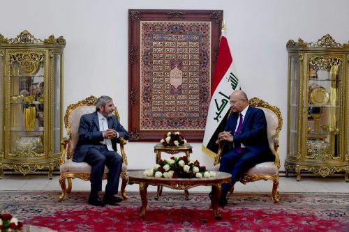 استقبل رئيس الجمهورية برهم صالح، الأمين العام للاتحاد الإسلامي الكردستاني صلاح الدين محمد بهاء الدين والوفد المرافق له.