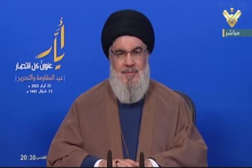 أكد الأمين العام لحزب الله السيد “حسن نصر الله” في كلمة له، بمناسبة عيد المقاومة والتحرير، أنّ “الإنجاز الذي تحقق عام 2000 هو أعظم انجاز في التاريخ المعاصر”، مُثبٌتا معادلة الردع بأن أي مساس بالمسجد الأقصى سيفجّر المنطقة.