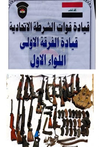 وذكرت القيادة في بيان تلقت*الرأي* الدولية نسخة منه، ان”قوة من اللواء الأول الفرقة الأولى شرطة اتحادية باشراف مباشر لقائد الفرقة اللواء “محمد جواد جعفر”، نفذت بالاشتراك مع مفارز استخبارات الفوج الثاني التابعة الى وكالة الاستخبارات والتحقيقات الاتحادية، عملية تفتيش على السلاح غير المرخص ومصادرة مجموعة من الأسلحة والاعتدة ضمن منطقة (النهروان – ام العبيد) جنوب شرق بغداد”.