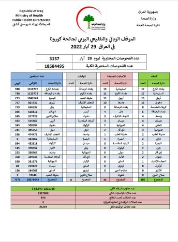 الصحة تسجل 71 اصابة جديدة بكورونا