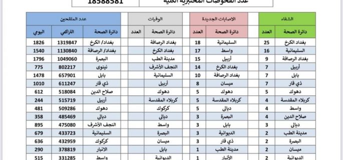 الصحة تسجل 111 اصابة جديدة بفيروس كورونا
