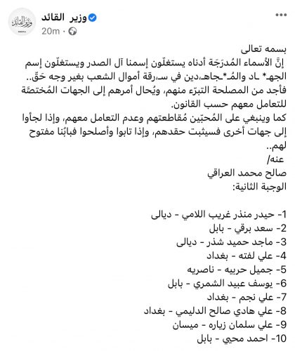 مقتدى الصدر “يتبرأ” من 10 أشخاص