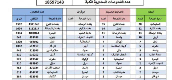 الصحة تسجل 110 اصابة جديدة بكورونا