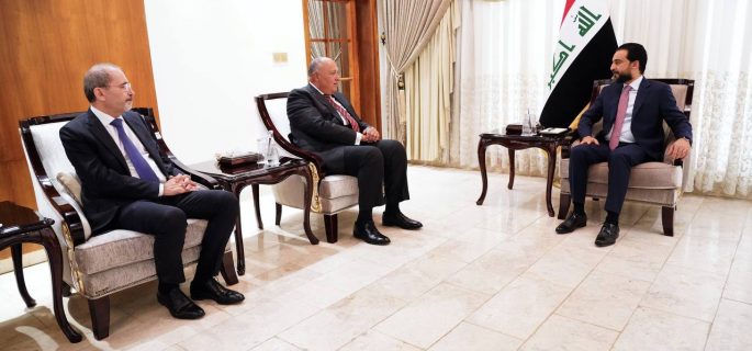 وذكر بيان لمكتب الحلبوسي تلقت *الرأي* الدولية نسخة منه، ان اللقاء الذي حضره وزيرِ الخارجية فؤاد حسين، بحث تعزيز التعاون المشترك في المجالات السياسية والأمنية والاقتصادية، وتأكيد استمرارية التنسيق والتشاور في إطار آلية التعاون الثلاثي بين العراق ومصر والأردن؛ لمواجهة التحديات الراهنة.