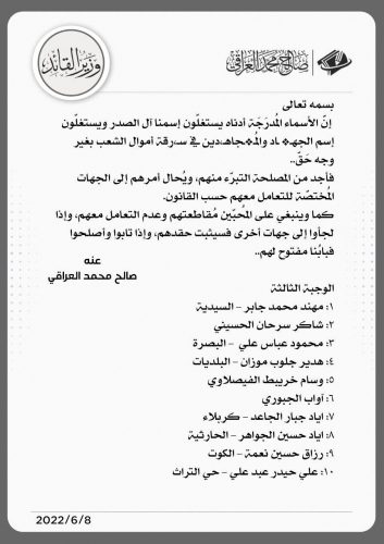 بالوثيقة.. الصدر يتبرأ من 10 أشخاص