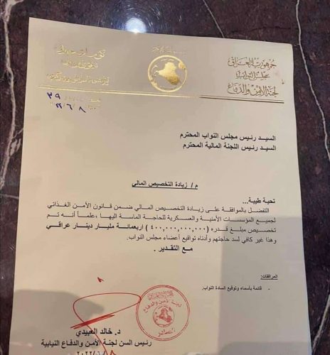 بالوثيقة.. لجنة نيابية تطالب بزيادة تخصيصات المؤسسات الامنية ضمن قانون الامن الغذائي