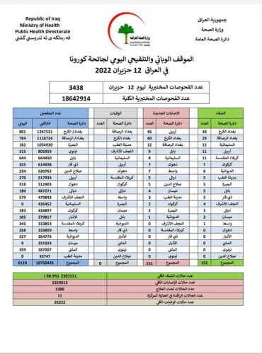 الصحة تسجل 151 إصابة جديدة بفايروس كورونا