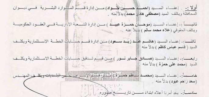 بالوثيقة : اعفاءات بالجملة من مناصب في ديوان محافظة بابل