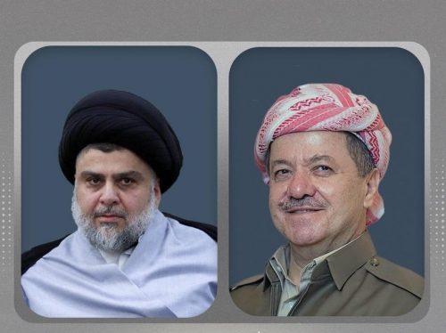بحث رئيس التيار الصدري مقتدى الصدر، مع رئيس الحزب الديمقراطي الكردستاني مسعود بارزاني وضع العراق وآخر تطورات العملية السياسية.