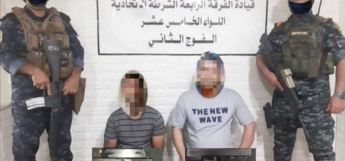 وذكرت القيادة في بيان تلقت*الرأي* الدولية نسخة منه، انه”بعد ورود معلومات دقيقة بوجود مشاجرة وإطلاق عيارات نارية في منطقة (الكرادة _ساحة الاندلس ) وسط العاصمة بغداد، على الفور تم تشكيل فريق أمني من اللواء الخامس عشر عمليات الفرقة الأولى شرطة اتحادية ضمن قاطع مسؤولية الفوج الثاني بالاشتراك مع مفارز وكالة الاستخبارات والتحقيقات الاتحادية ، تم خلالها القبض على اثنين من المتهمين وبحوزتهما مسدسين مختلفين، مخزني مسدس، 11 إطلاقة مسدس”.