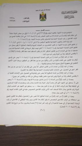 بالوثائق: مؤسسة الشهداء تعلن إقرار حق الجمع بين الراتب التقاعدي ومبلغ الاعانة الاجتماعية