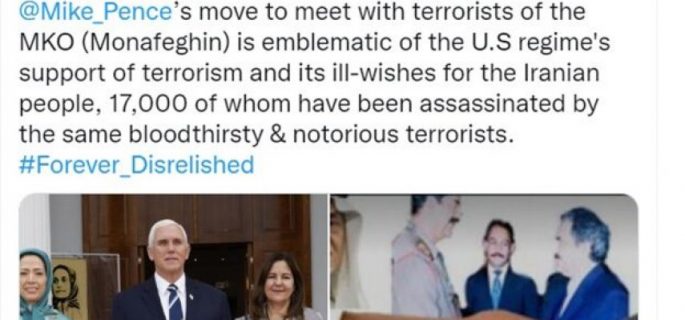 وكتب كاظم غريب أبادي رئيس لجنة حقوق الانسان على حسابه في موقع تويتر: “ان لقاء مايك بنس مع إرهابيي المنافقين دليل على دعم النظام الأمريكي للإرهاب وكراهيته للشعب الإيراني الذي اغتيل 17 ألف شخص منهم على يد هذه المجموعة المتعطشة للدماء وسيئة الصيت.