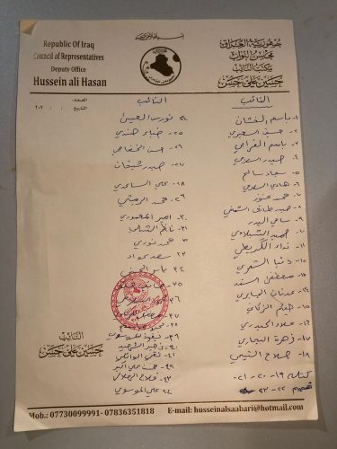 بالوثيقة : نواب بابليون يتعهدون بإيصال مطالب محتجي المحافظة الى بغداد