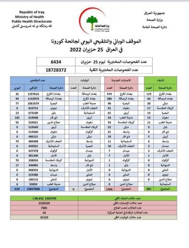الصحة تسجل 1345 إصابة جديدة بكورونا