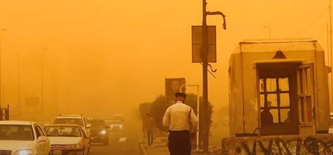 دخلت العاصفة الترابية إلى العاصمة بغداد، بعد ساعات على اجتياحها نينوى والانبار واجزاء من صلاح الدين.