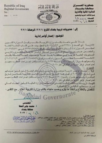 بالوثيقة.. العطا يوجه مديريات التربية بإصدار الأوامر الإدارية الخاصة لمحاضري 2020
