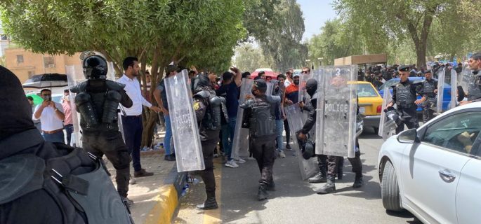 إصابات جراء تدافع بين حملة شهادات عليا ومكافحة الشغب وسط بغداد