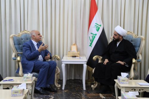 استقبل الأمين العام لحركة عصائب أهل الحق قيس الخزعلي في مكتبه بالعاصمة بغداد، الثلاثاء، سفير فلسطين في العراق أحمد عقل.