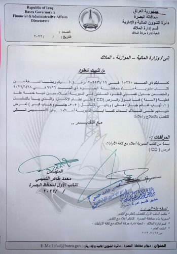 بالوثيقة.. الموافقة على تثبيت 505 عقداً في مديرية ماء البصرة على الملاك الدائم