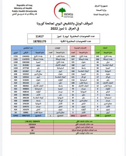 الصحة تسجل 2952 إصابة جديدة بكورونا
