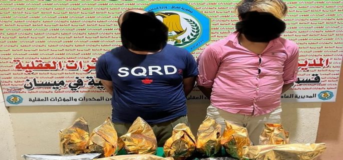 أعلنت مديرية شرطة ميسان، السبت، القبض على اثنين من تجار المخدرات في ناحية العزير جنوب مدينة العمارة.