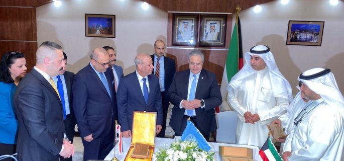 ولفت البيان، “جرت مراسم التسليم اليوم الإثنين المُوافق 2022/7/4، في مقر وزارة الإعلام الكويتيَّة بحضور مُساعد وزير الخارجيَّة الكويتيّ لشُؤُون الوطن العربيّ ناصر القحطاني وممثل الأمين العام للأمم المُتحدة المُنسق المُقيم في دولة الكويت طارق الشيخ، وسفير جُمهوريَّة العراق لدى الكويت المنهل الصافي”.