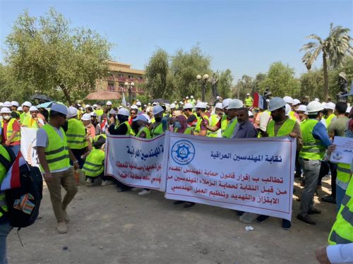 نظمت نقابة المهندسين العراقية، اليوم الثلاثاء، وقفة احتجاجية امام المنطقة الخضراء للمطالبة بحقوق المهندسين.