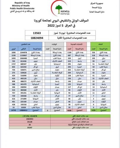 الصحة تسجل 4698 إصابة جديدة بكورونا
