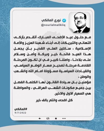 المالكي “يأمل” أن تشهد المرحلة المقبلة “تصحيح” مسار الوضع السياسي