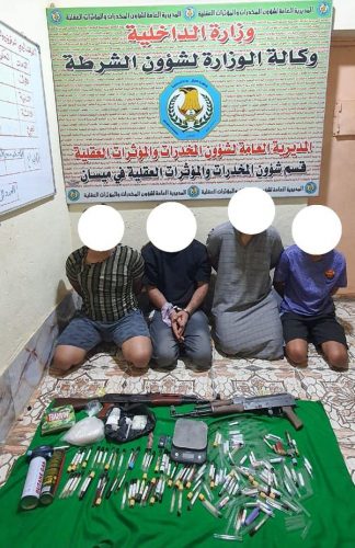 اعلنت مديرية شرطة ميسان، السبت، عن تمكن مديرية المخدرات والمؤثرات العقلية في ميسان من القاء القبض على عصابة مكونة من (4) اشخاص تقوم بتجارة وترويج المخدرات داخل مركز المحافظة.