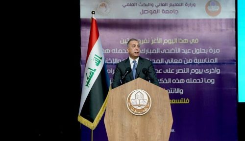 واستذكر الكاظمي في كلمة له خلال الاحتفالية التي أقيمت في جامعة الموصل بمناسبة الذكرى الخامسة لتحرير محافظة نينوى من براثن داعش الإرهابية، قائلا: ما جرى قبل سنوات في هذه المدينة عندما أراد وحوش الأرض وخوارج العصر اختطافها وجعلها عاصمة لخلافة مزعومة.. كما أستذكر البطولات التي قدمها العراقيون من أبطالنا في الجيش العراقي وجهاز مكافحة الإرهاب والحشد الشعبي والبيشمركة والشرطة الاتحادية والأجهزة الأمنية، كلهم حاربوا هذا الإرهاب؛ من أجل العراق، ومن أجل العالم.