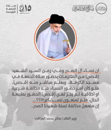 وزير الصدر يتحدث عن منع النساء من حضور صلاة الجمعة الموحدة
