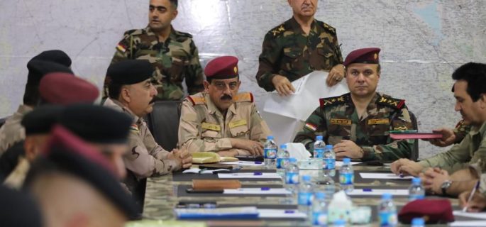 وقالت القيادة في بيان تلقت *الرأي* الدولية نسخة منه، إن “رئيس أركان العمليات المشتركة الفريق الركن حامد عبد المقصود يرافقة قائد القوات البرية الفريق الركن قاسم المحمدي وعدد من القادة العسكريين وصلوا إلى أربيل”.