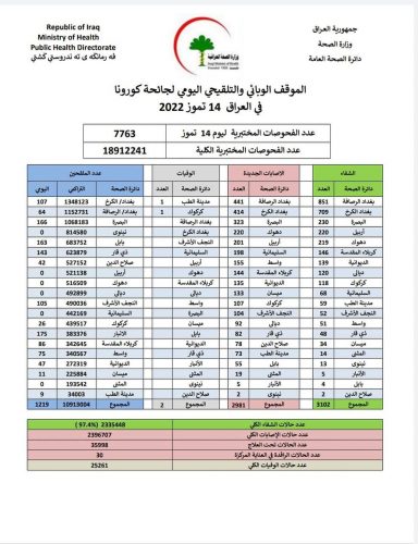 الصحة تسجل 2981 إصابة جديدة بكورونا