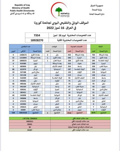 الصحة تسجل 2516 إصابة جديدة بفيروس كورونا